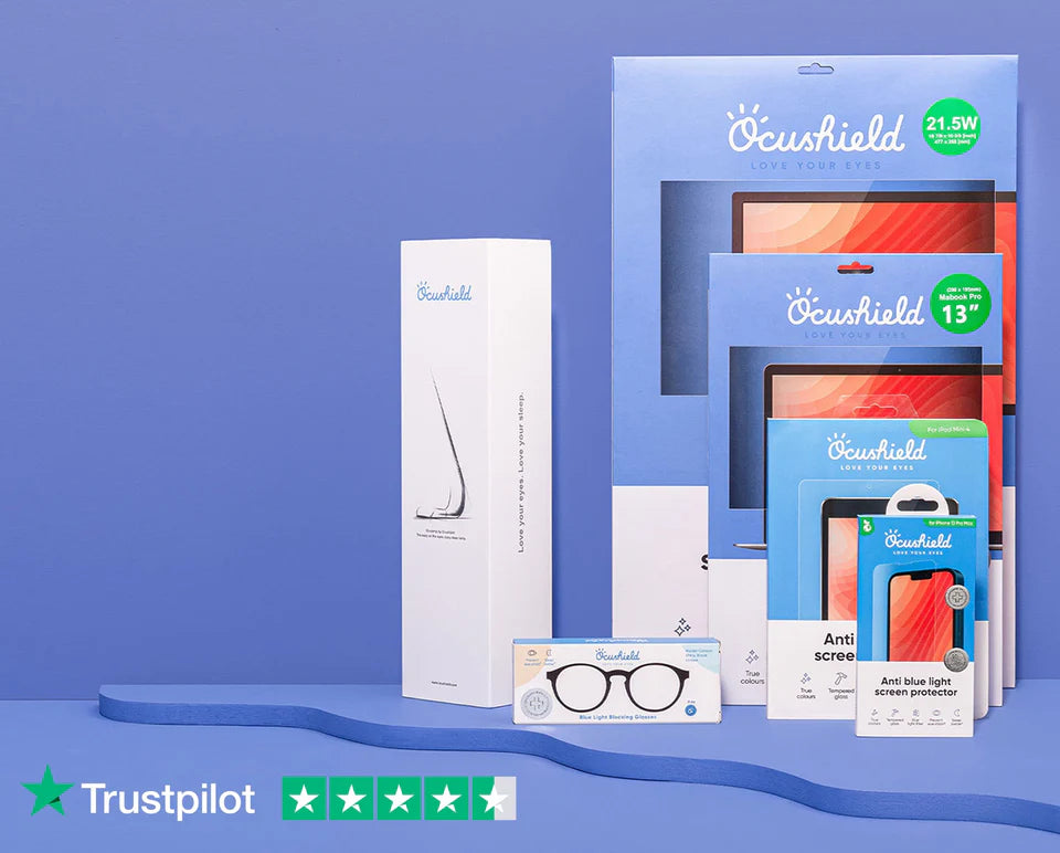 Ocushield® anti blue light products allow you to have fresher feeling eyes & improved sleep after screen use.